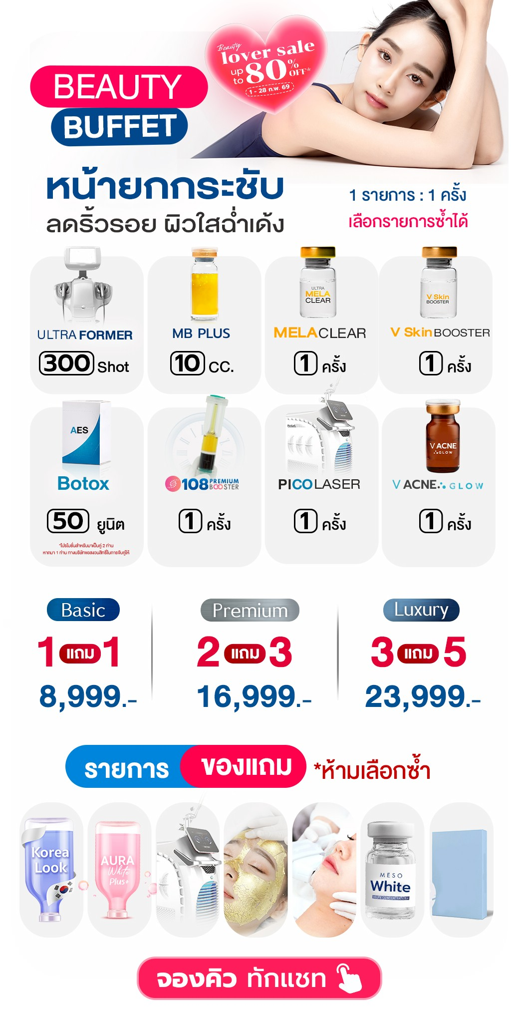 โปรแกรมลดริ้วรอย โปรแกรมยกกระชับใบหน้า โปรแกรมฉีดฟิลเลอร์ โปรแกรมดูแลผิวพรรณ